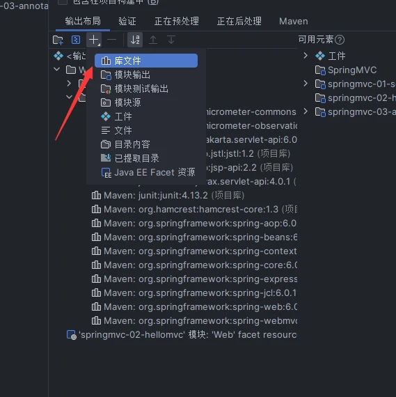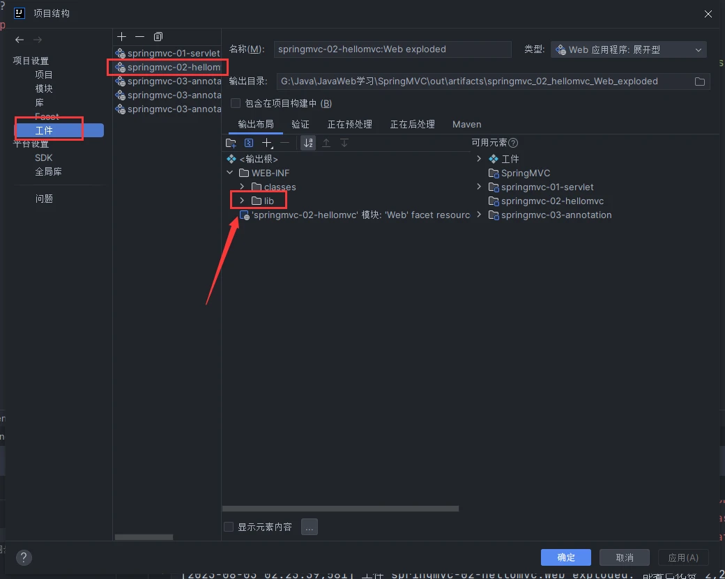 打开项目结构,打开工件 查看自己有没有lib文件,如果没有,请继续往下看,如果有请按照方法二检查自己的tomcat版本