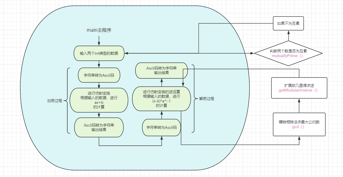 }inverseElement * ((num - 'a') - b)进行解密inverseElement是a(mod26)的乘法逆元