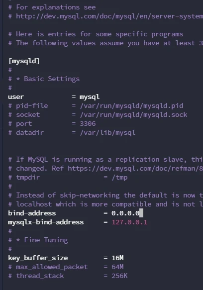 sudo vim /etc/mysql/mysql.conf.d/mysqld.cnf